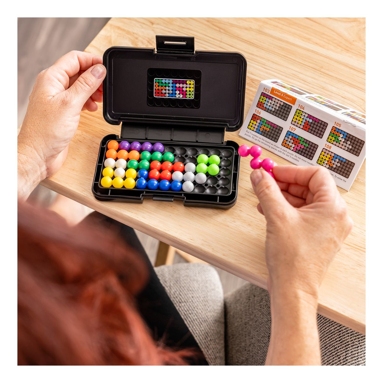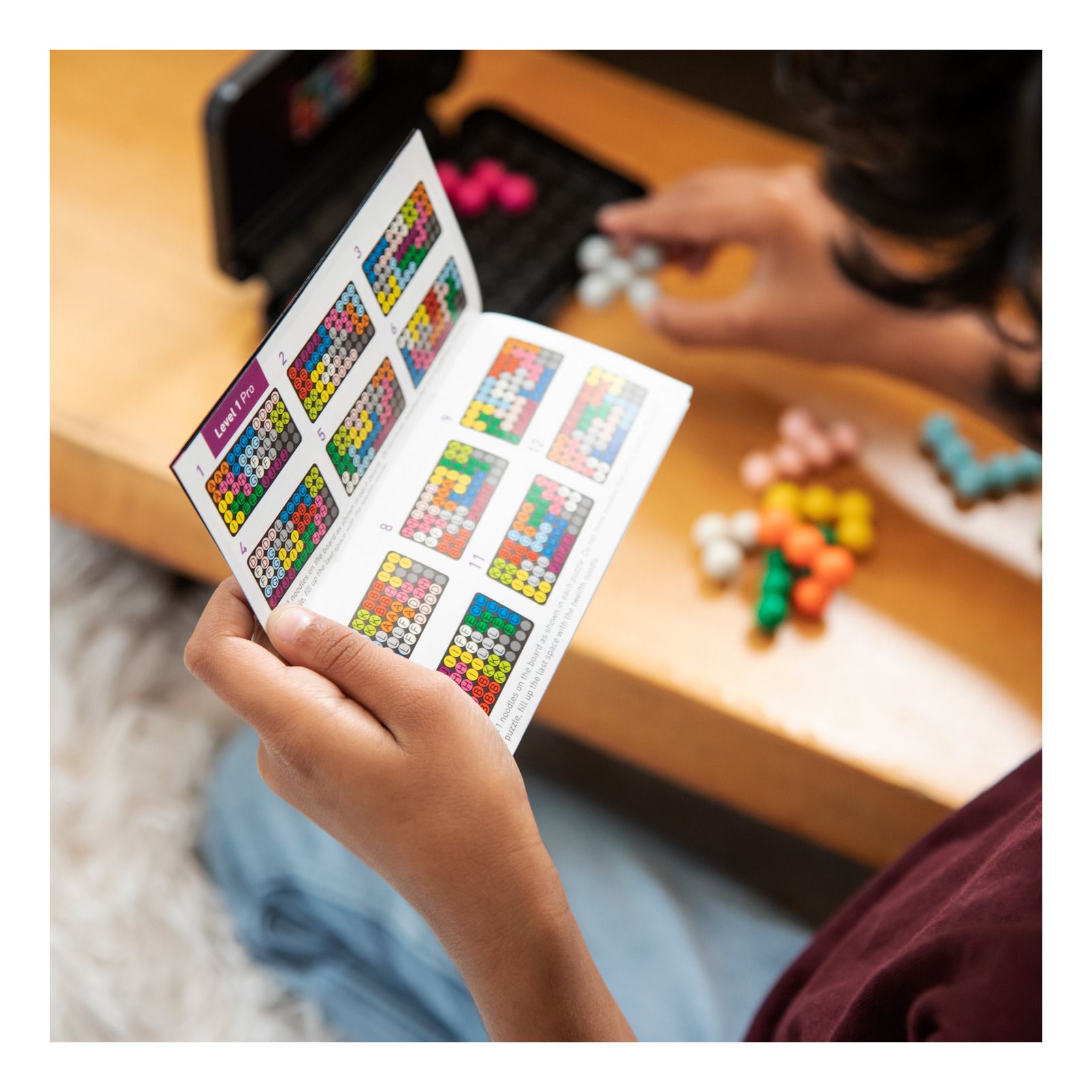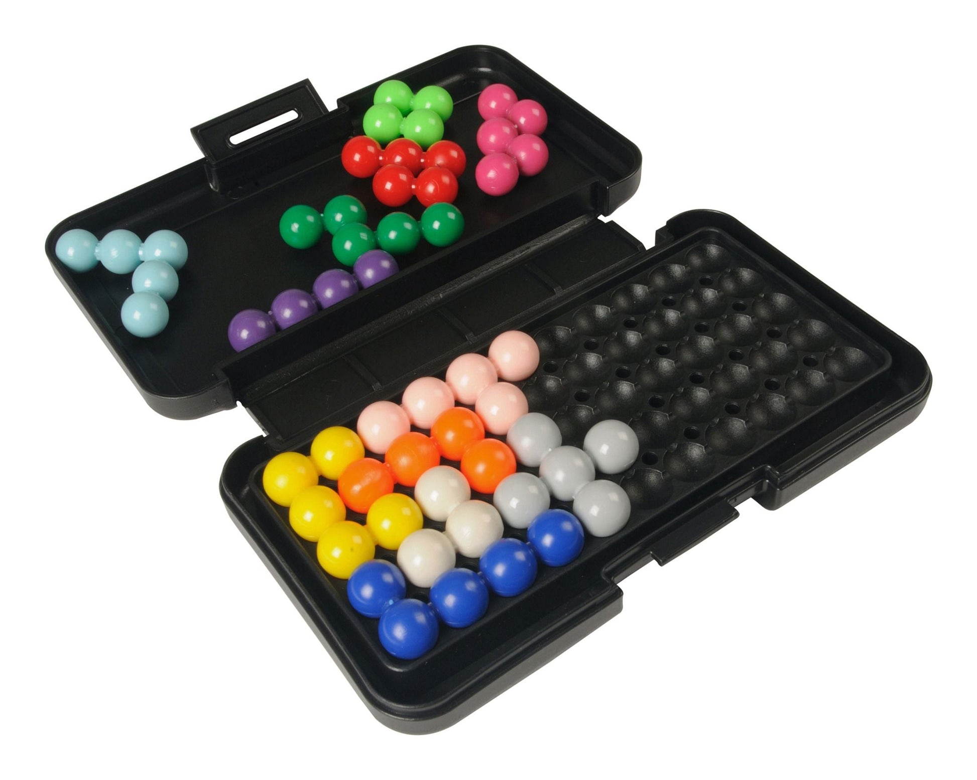 Learning Resources® Kanoodle® basic. Players improve their spatial reasoning and critical thinking skills as they rearrange the colourful pieces to solve 2D and 3D puzzles. Featuring 200 brain boosting challenges, players simply pick a challenge from the book, set it up, then place their remaining plastic game pieces correctly in order to complete the challenge. Includes 12 colourful puzzle pieces, 48-page challenge booklet (including 200 puzzles) and sturdy carry case. Challenges progress in difficulty. Perfect for individual play. Suitable for ages 7+.