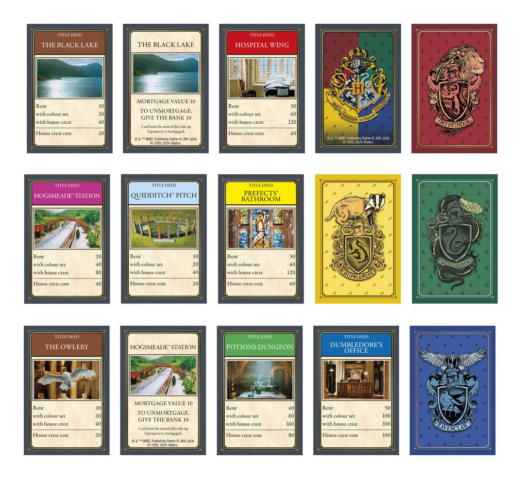 Ready for a magical year at Hogwarts? In the Monopoly Harry Potter Edition game, play as a Hogwarts student. To start, each player chooses a themed golden token. Then they’ll choose a House Card to be sorted into a house. In this edition, Hogwarts locations are properties and house points replace Monopoly money. Move around the board and use house points to explore iconic locations in Hogwarts castle and Hogsmeade Village. The more a player explores, the more house points they can collect from other players. Collect a colour set to add house crests and draw Owl Post cards for game-changing news. The game ends when all locations have been explored, and the player with the most house points wins! This strategy board game is a fun game for family time, and it’s a great present for children ages 8 and up, teens and adults who are fans of Harry Potter. WIZARDING WORLD and all related trademarks, characters, names and indicia are © & ™ Warner Bros. Entertainment Inc. Publishing Rights © JKR. The Hasbro and Monopoly names and logos, the distinctive design of the gameboard, the four corner squares, the Mr. Monopoly name and character, as well as each of the distinctive elements of the board and playing pieces are trademarks of Hasbro, Inc. for its property trading game and game equipment.