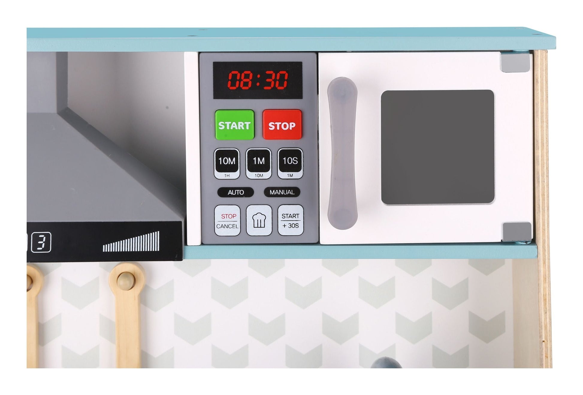 Get creative in the kitchen with Tooky Toy's wooden kitchen set! This lovely wooden kitchen is accompanied with 7 accessories; a frying pan, saucepan, salt, pepper and 3 utensils! The multifunctional Kitchen allows little ones to roleplay as a chef, baker or they find their parents cooking inspirational and want to be just like them! With an oven, stove, sink and microwave the play can be endless as little one's create a variety of imaginative dishes! Suitable for children aged 3+